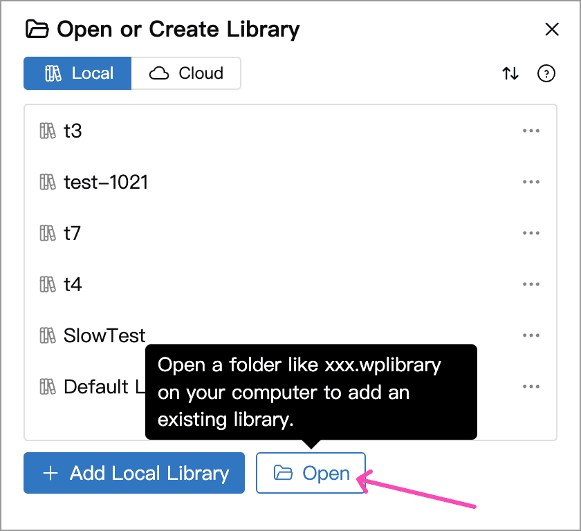 Section titled “Rename a local library”The local Library is a normal folder on the current device, usually ending with .wplibrary. If you want to rename the library or move it, you can follow the steps below:
