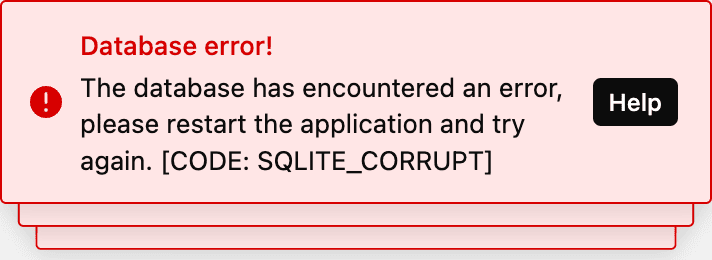 SQLITE_CORRUPT | Database corrupted | File corruption, “database disk image is malformed” |