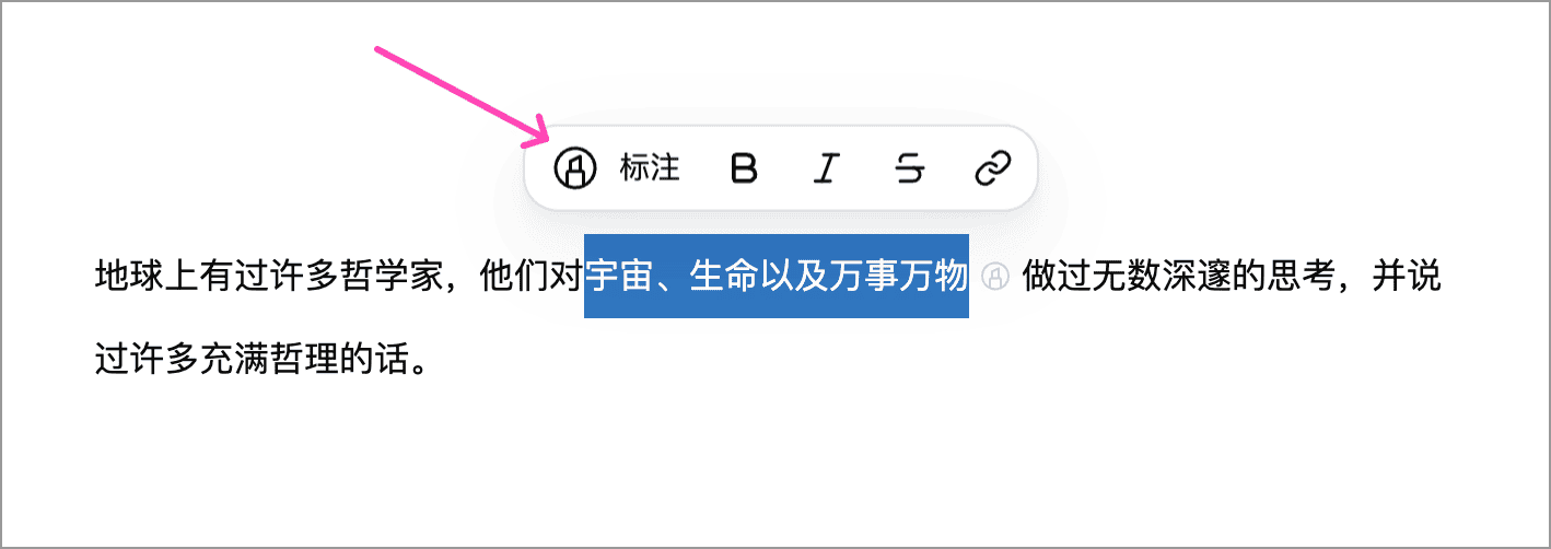 标注用于在正文中标记需要关注的片段,并可附加简短说明。它适合记录修改意见、伏笔、待确认信息,或临时标记之后要回看的内容。