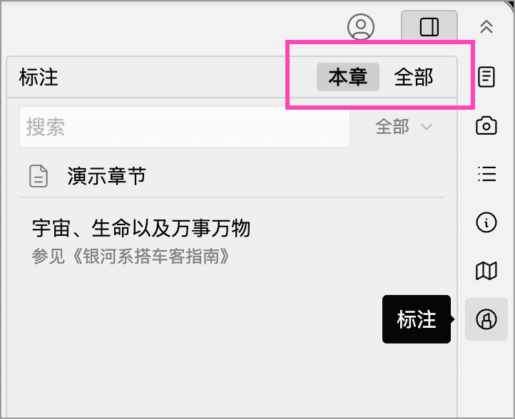 - 本章:只显示当前选中文档中的标注。