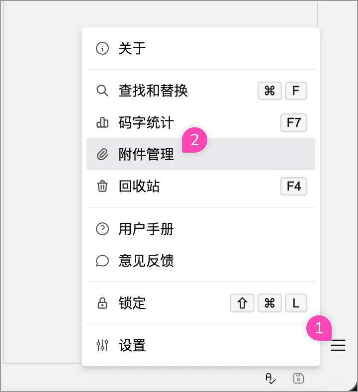 WonderPen 中的附件主要来自文档和白板中插入的图片等资源文件。你可以通过主菜单中的附件管理打开附件管理窗口,查看当前文档库中的附件。